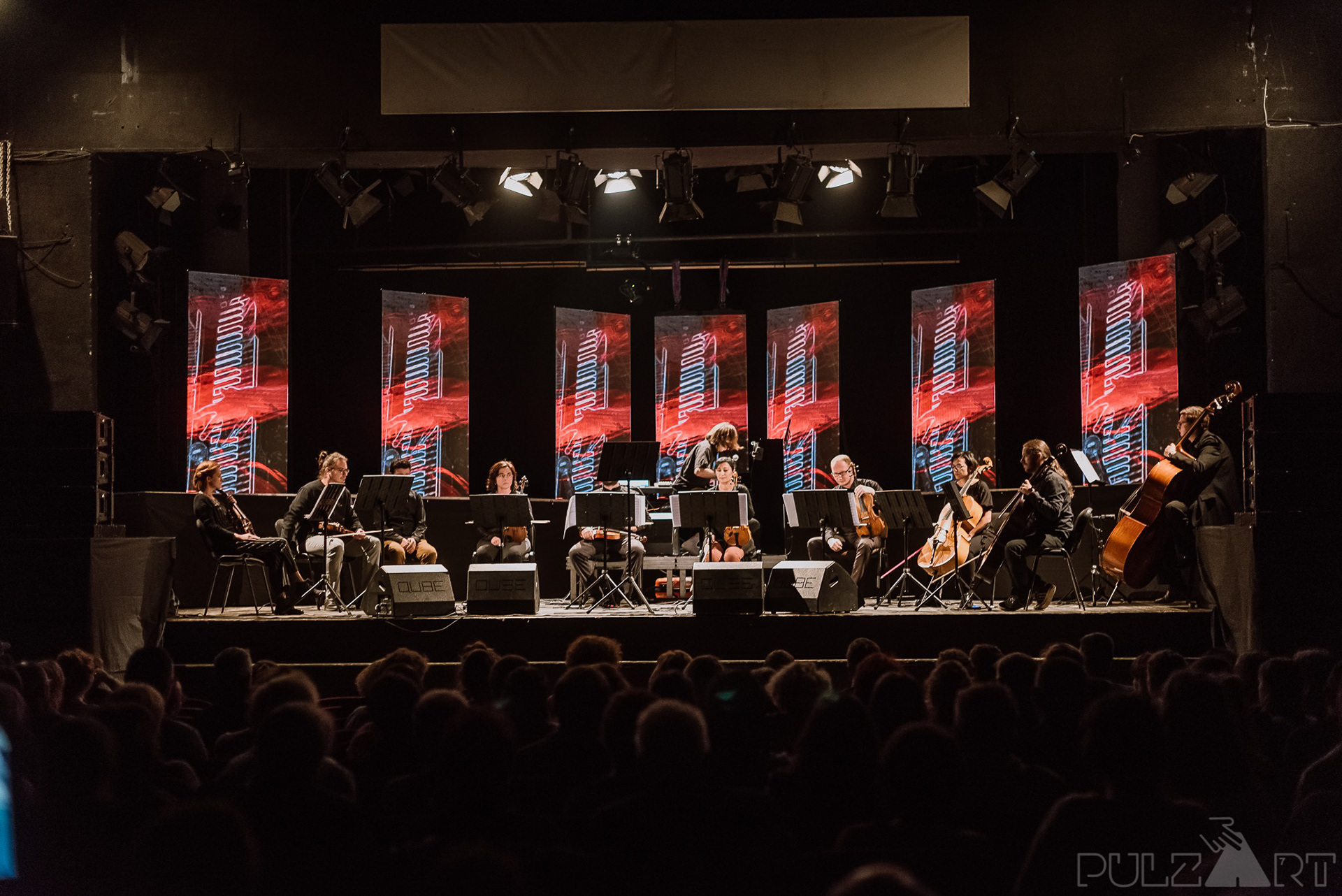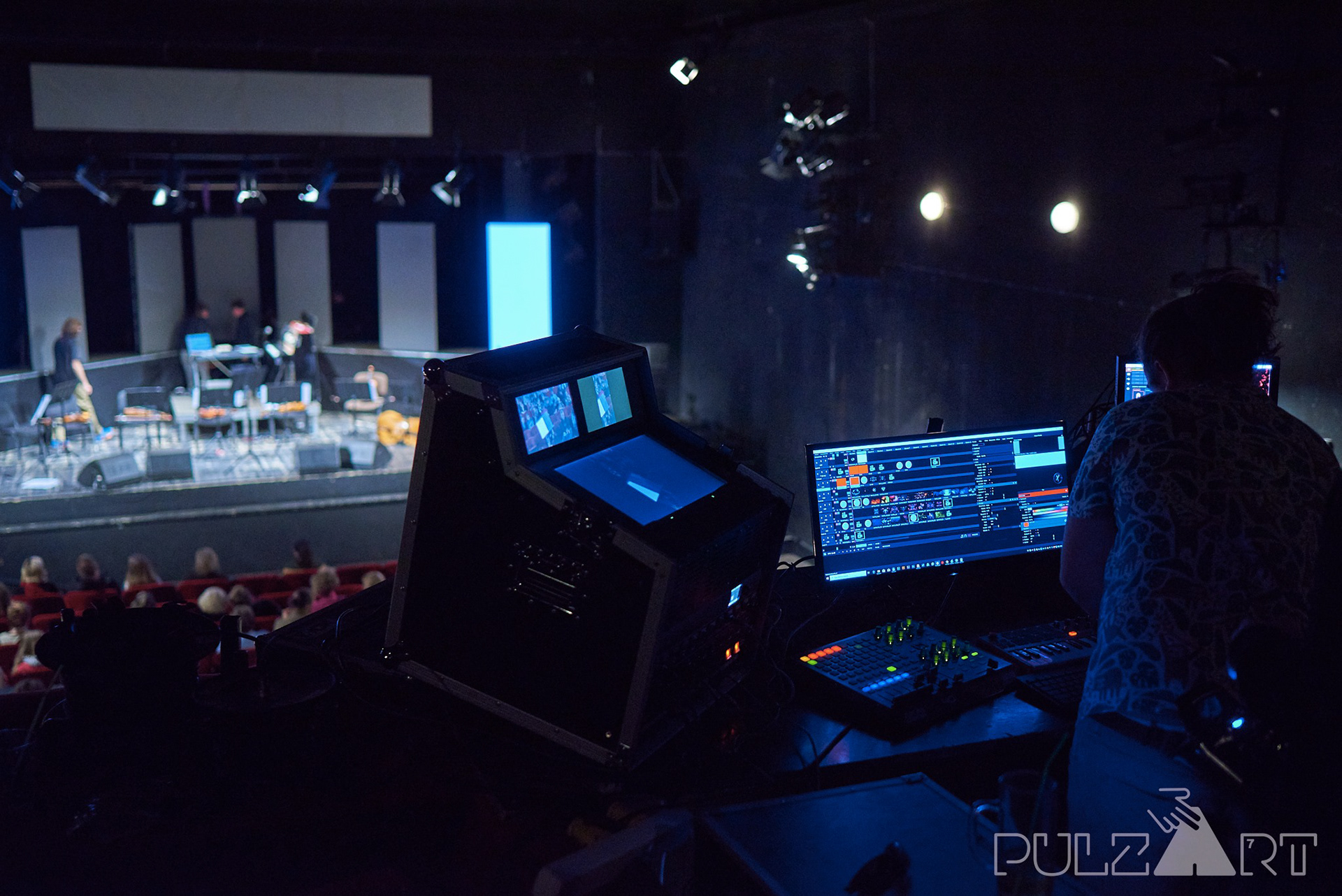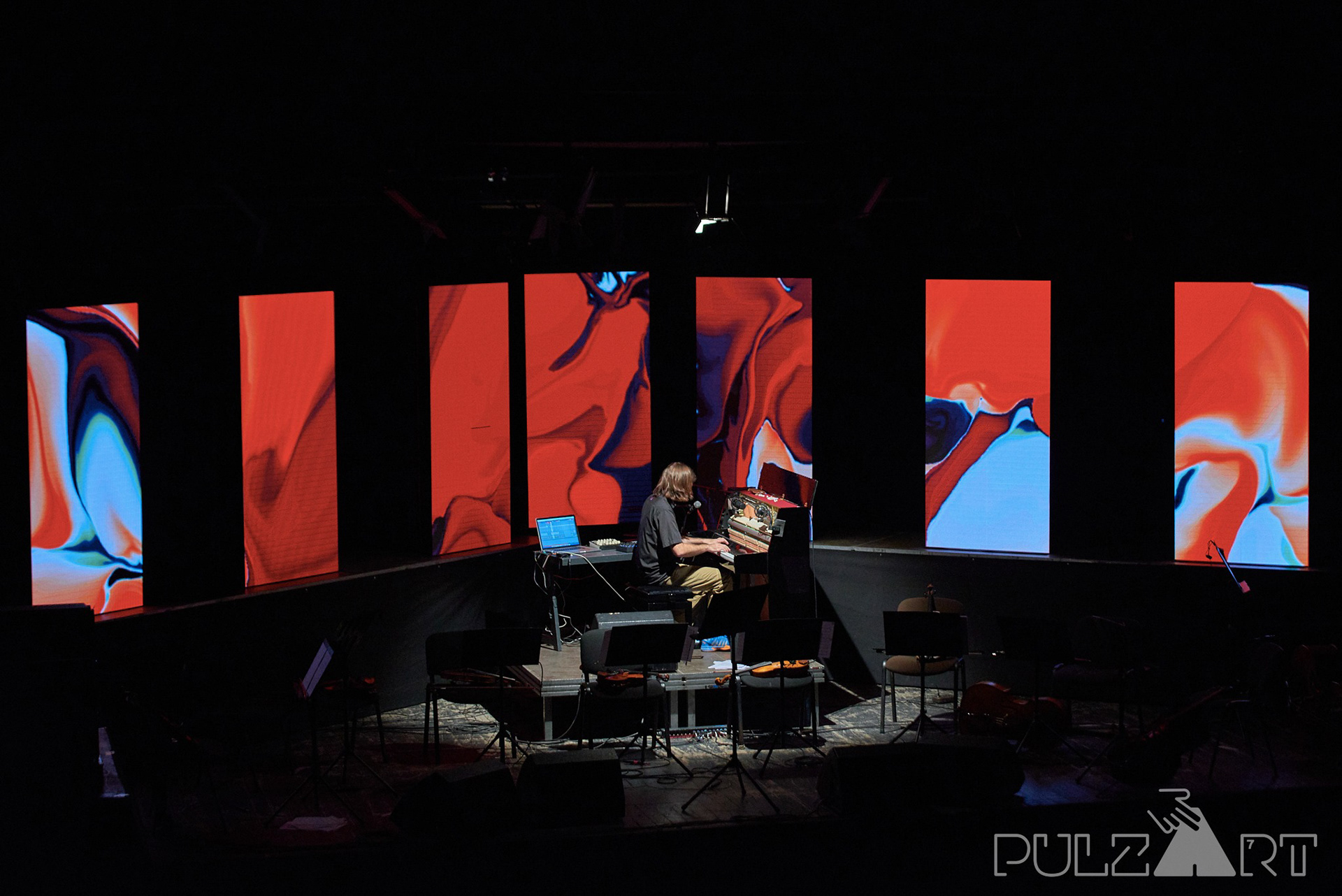 For pulzArt 2019’s closing concert we built a live, generative visual set—morphing geometry, audio-reactive patterns, and evolving textures—blended with a live camera feed presented in an artistic way. We composited IMAG into the motion layers using soft masks, feedback trails, and subtle grading, so performers appeared inside the visuals rather than on top of them.